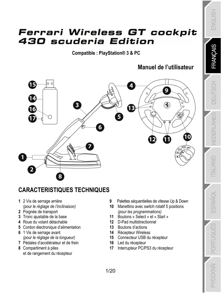 FERRARI WIRELESS F430 COCKPIT - Volant de course THRUSTMASTER - Notice d'utilisation et mode d'emploi gratuit