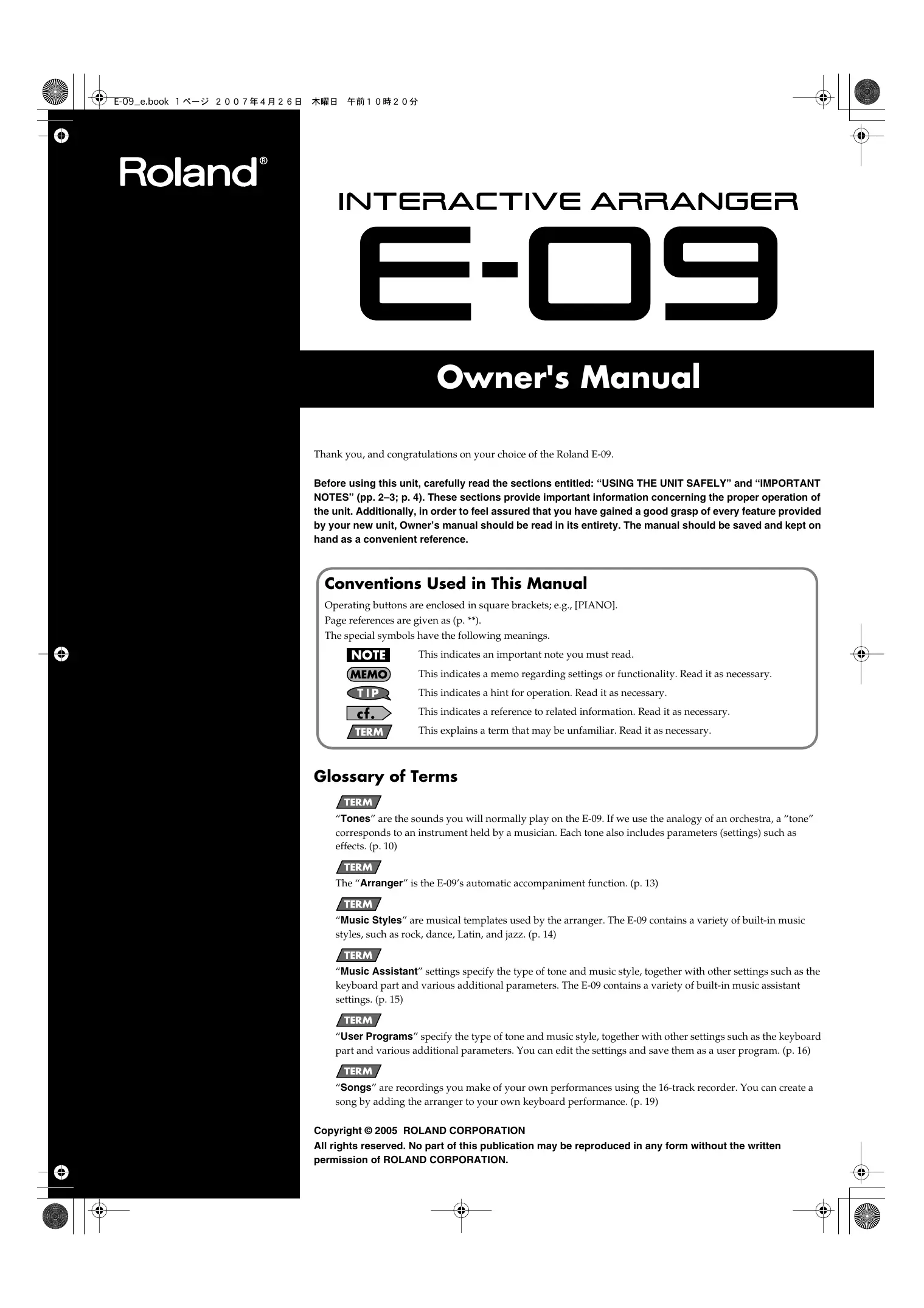 E-09W - Clavier arrangeur ROLAND - Notice d'utilisation et mode d'emploi gratuit
