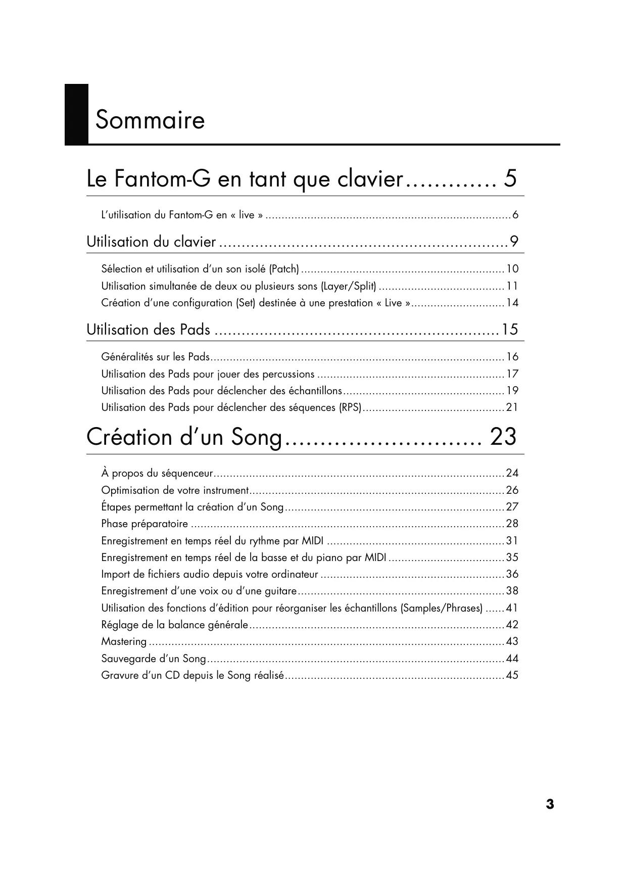 - Prise en main Sommaire Le Fantom-G en tant que clavier p. 5