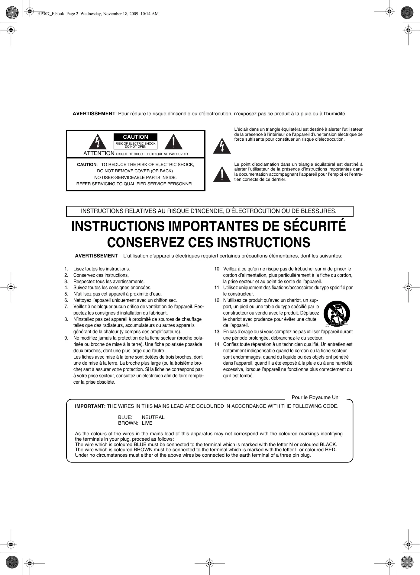 IMPORTANT: THE WIRES IN THIS MAINS LEAD ARE COLOURED IN ACCORDANCE WITH THE FOLLOWING CODE. NEUTRAL BLUE: BROWN: LIVE As the colours of the wires in the mains lead of this apparatus may not correspond with the coloured markings identifying the terminals in your plug, proceed as follows: The wire which is coloured BLUE must be connected to the terminal which is marked with the letter N or coloured BLACK. Ecoutez ce que vous avez joué “Enregistrer votre jeu” (p. 41)