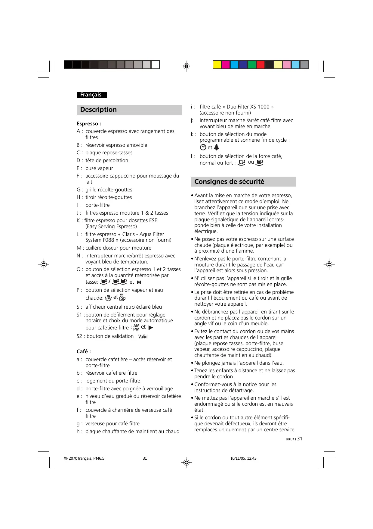 10/11/05, 12:43 agréé Krups. En aucun cas, l’appareil ne doit être ouvert par vos soins.