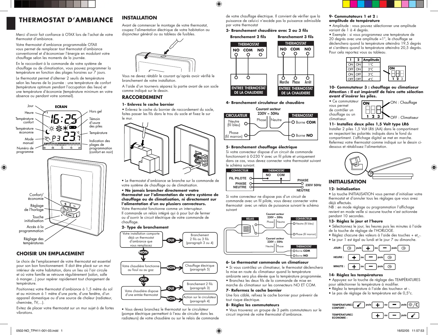 MODE D'EMPLOI THERMOSTAT TPH11 OTAX
