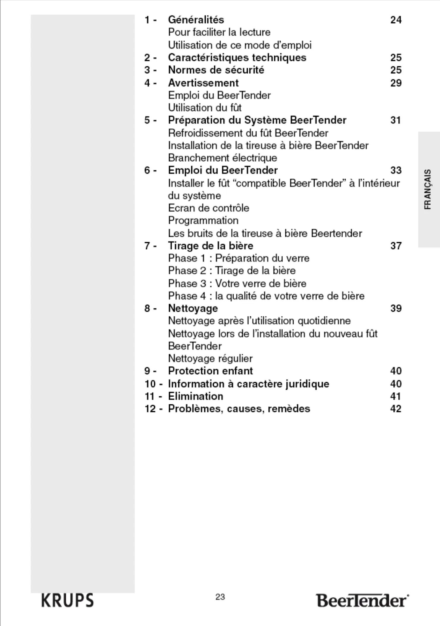 VB5120 BEERTENDER - Tireuse à bière KRUPS - Notice d'utilisation et mode d'emploi gratuit