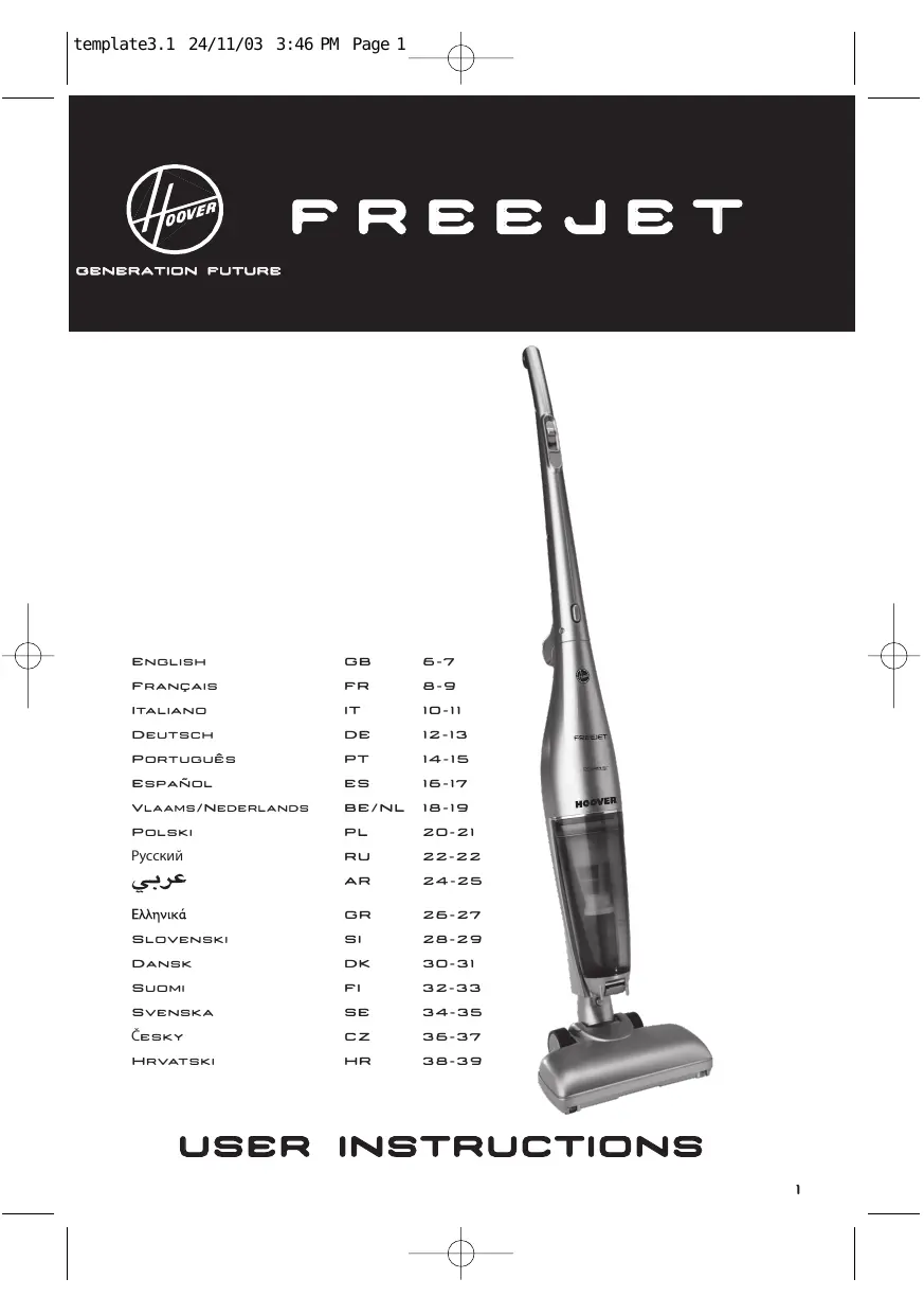 Retrouvez gratuitement la notice de l'appareil FREEJET HOOVER au format PDF.