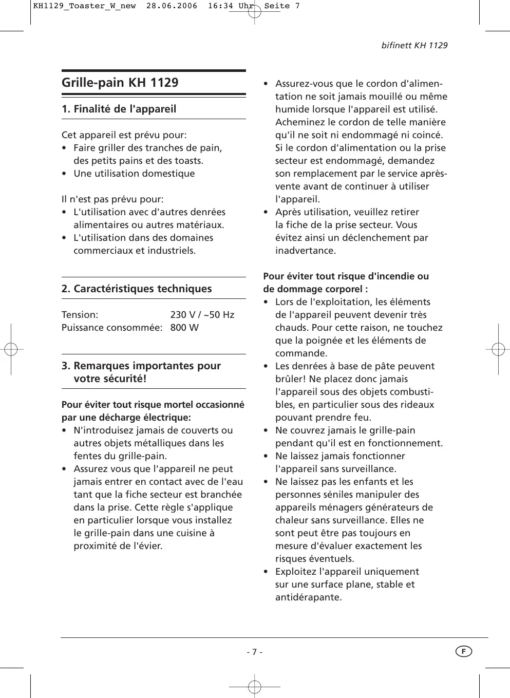 MODE D'EMPLOI BIFINETT KH 1129 GRILLE-PAIN KOMPERNASS