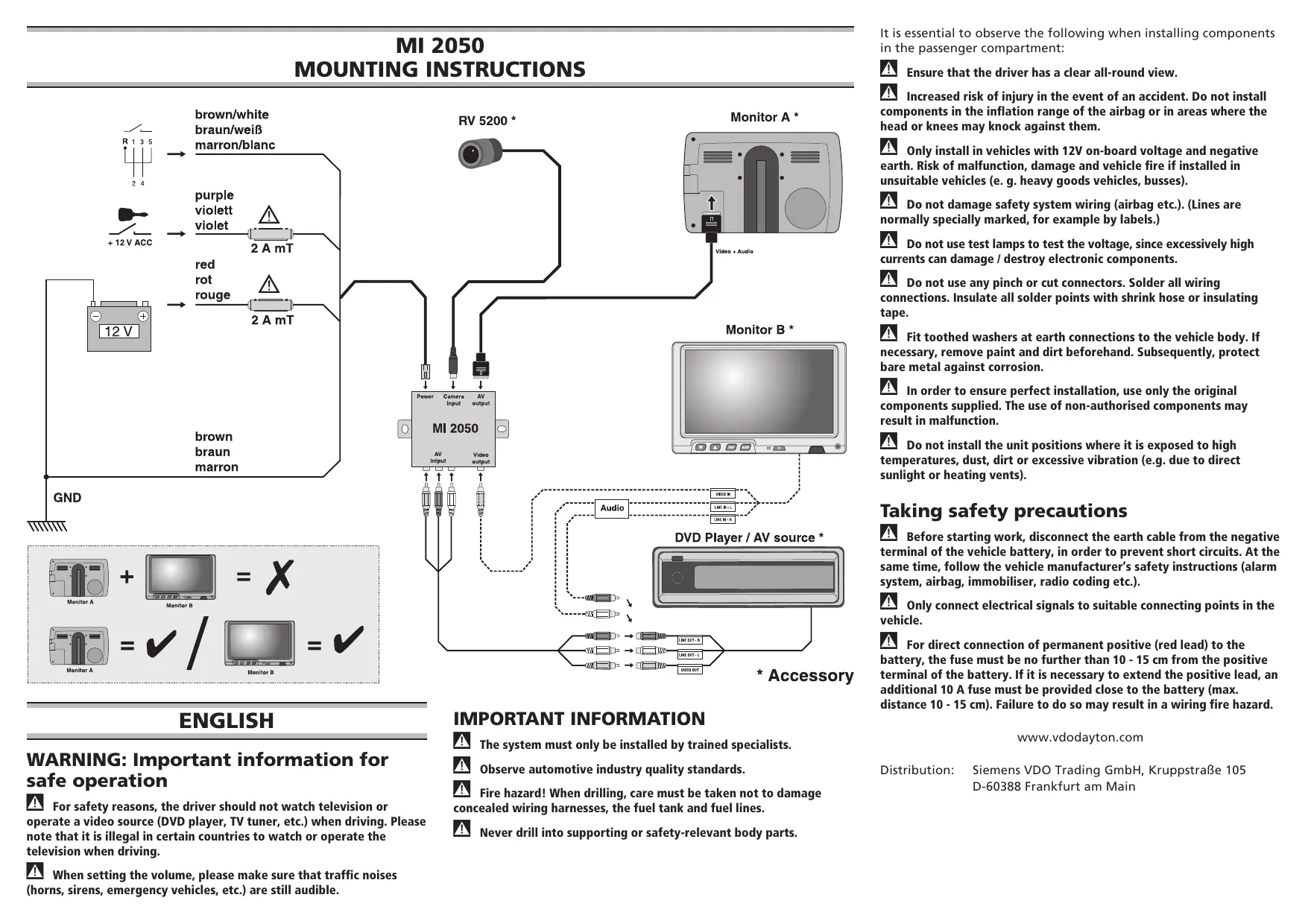 MI 2050 - Électronique embarquée VDO DAYTON - Notice d'utilisation et mode d'emploi gratuit