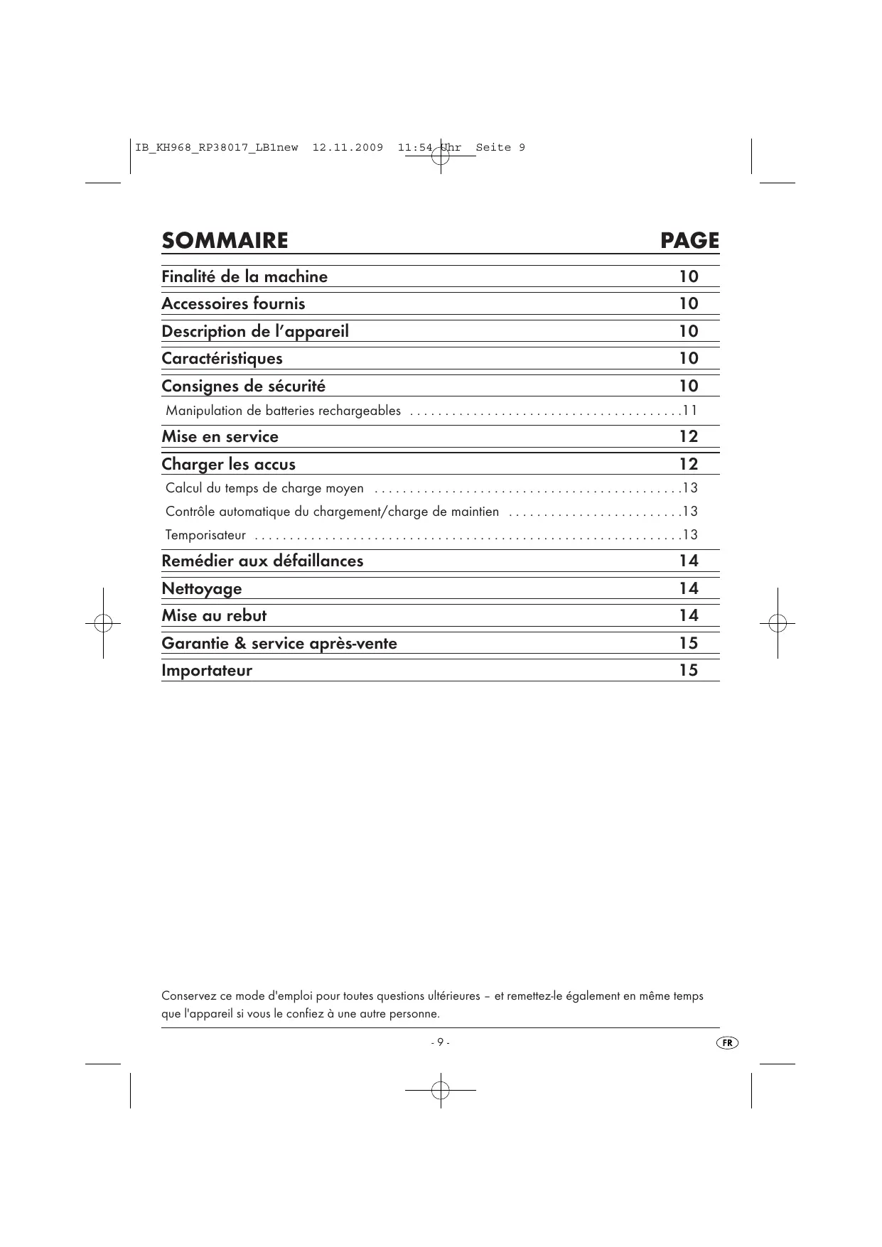 Accessoires fournis • Chargeur de piles KH 968 • Mode d’emploi
