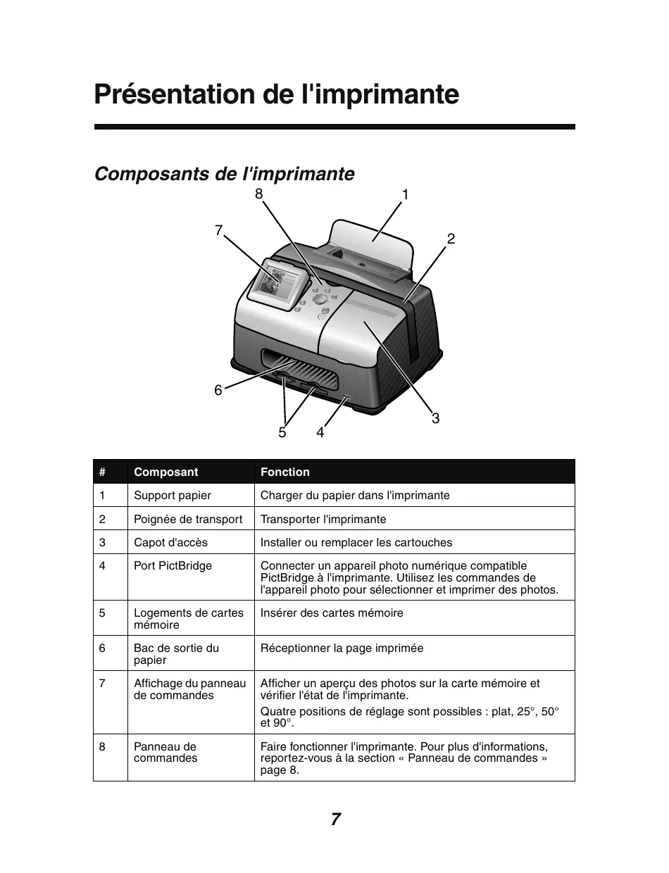 - logiciel ou le matériel de l'imprimante. Table des matières Présentation de l'imprimante p. 7