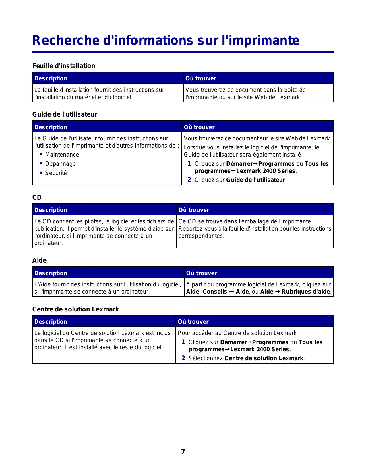 Recherche d'informations sur l'imprimante 7