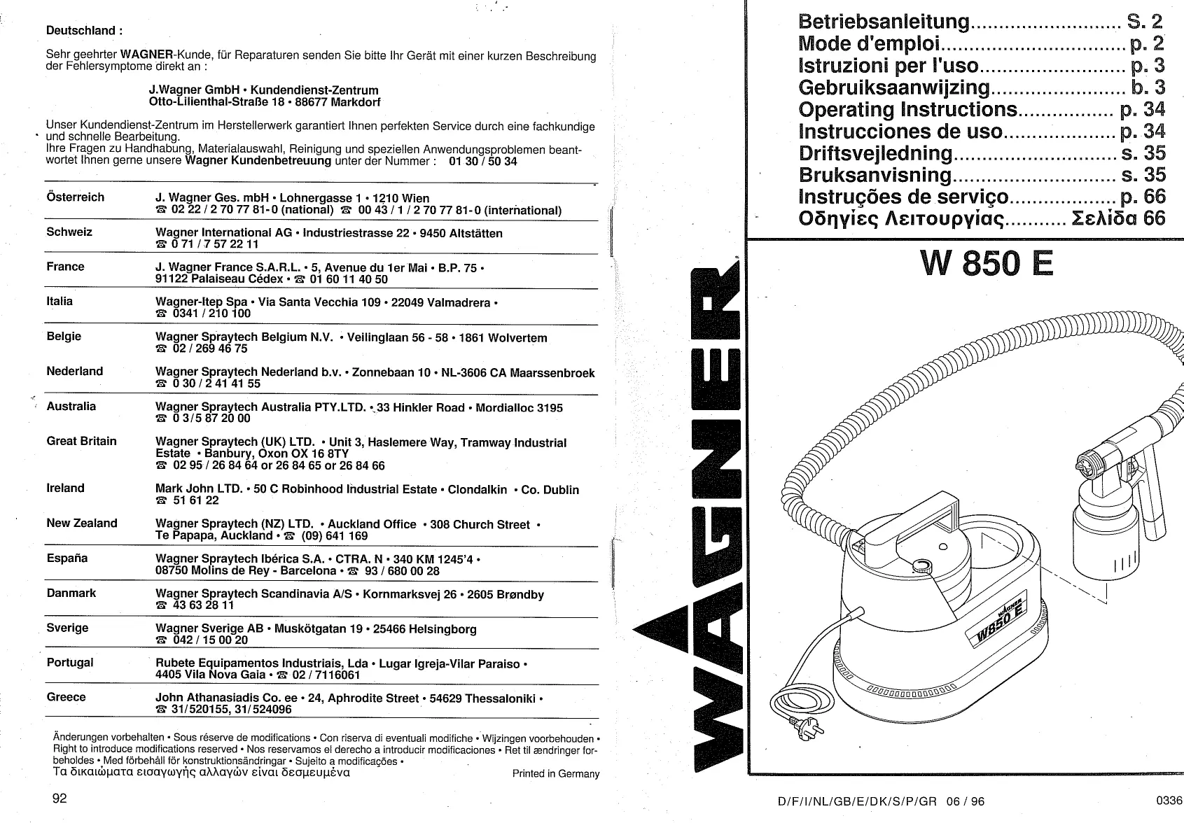 Retrouvez gratuitement la notice de l'appareil W 850 E WAGNER au format PDF.