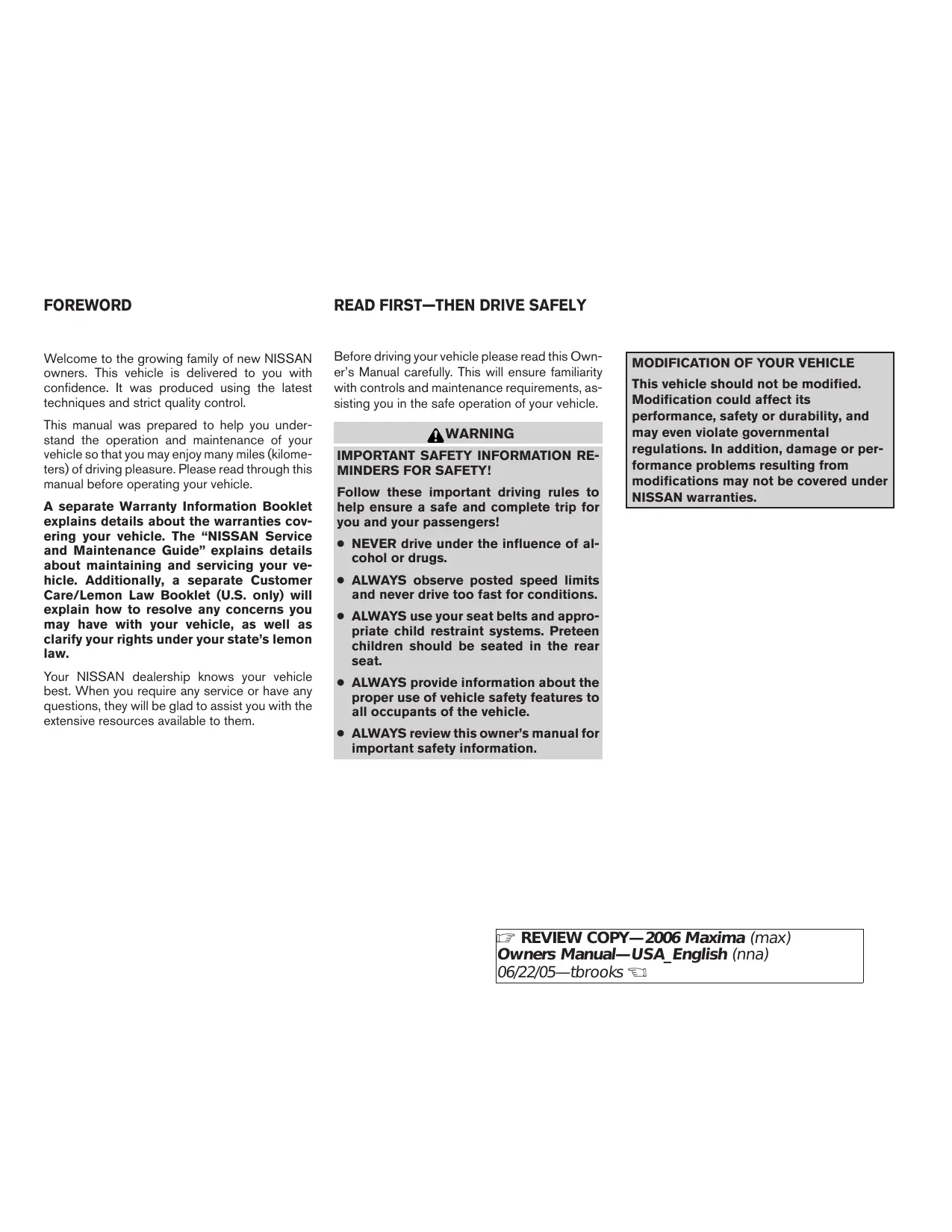 Retrouvez gratuitement la notice de l'appareil MAXIMA 2006 NISSAN au format PDF.