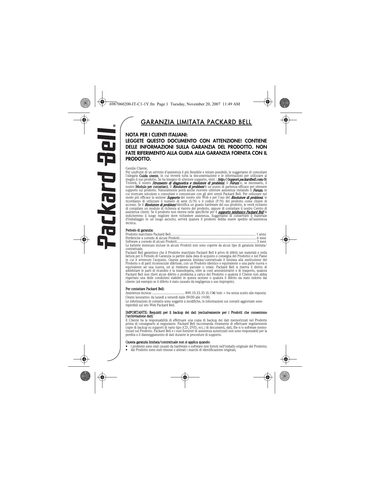 - Contactez le service client Packard Bell pour obtenir une assistance ou demander un support logiciel si nécessaire.