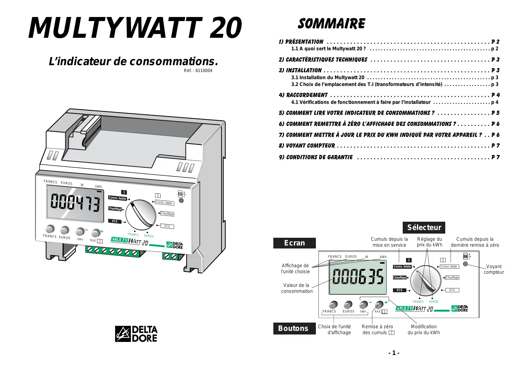 1.1 A quoi sert le Multywatt 20 ? . . . . . . . . . . . . . . . . . . . . . . . . . . . . . . . . . . . . . . . . . . . . p 2 L’indicateur de consommations. Réf. : 6110004