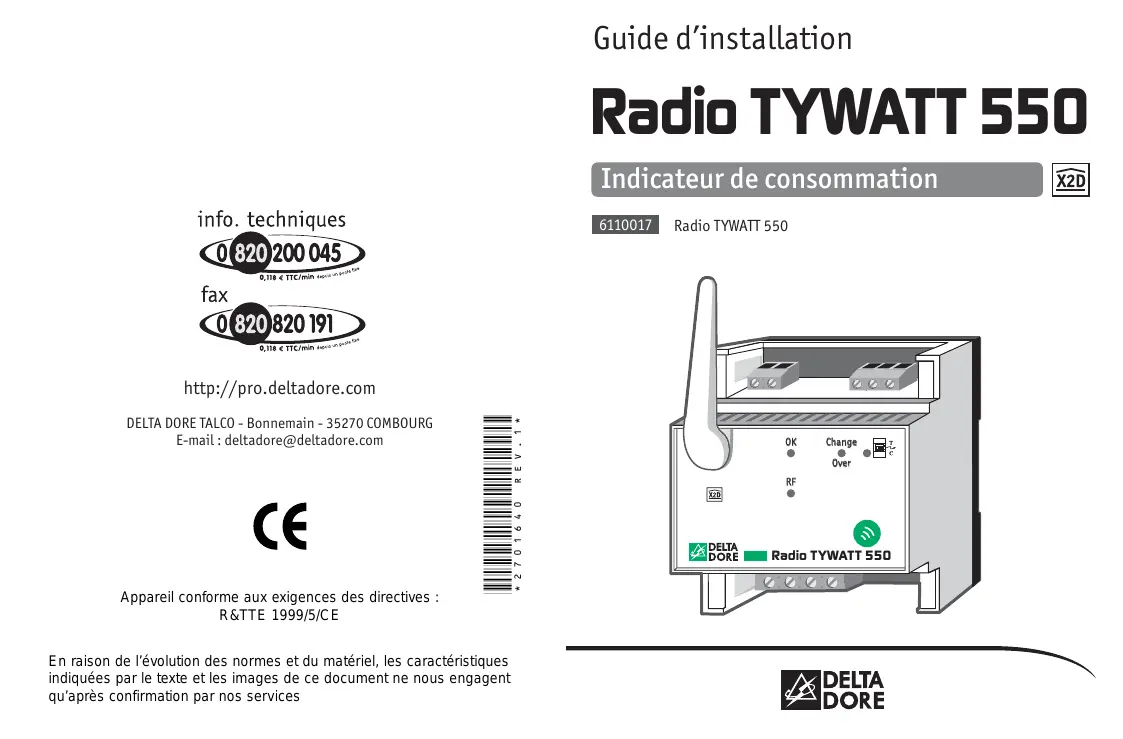 Radio TYWATT 550 DELTA DORE TALCO - Bonnemain - 35270 COMBOURG E-mail : deltadore@deltadore.com Appareil conforme aux exigences des directives :
