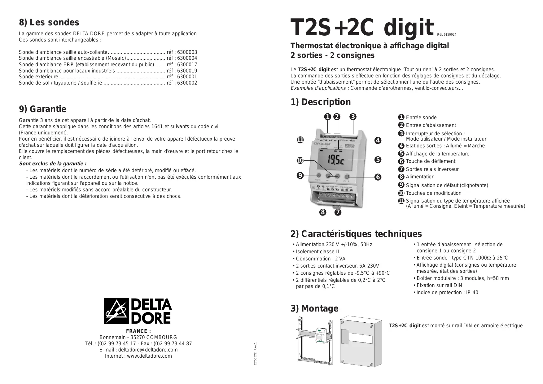 Téléchargez la notice de votre Thermostat programmable au format PDF gratuitement ! Retrouvez votre notice T2S+2C DIGIT - DELTA DORE et reprennez votre appareil électronique en main. Sur cette page sont publiés tous les documents nécessaires à l'utilisation de votre appareil T2S+2C DIGIT de la marque DELTA DORE.