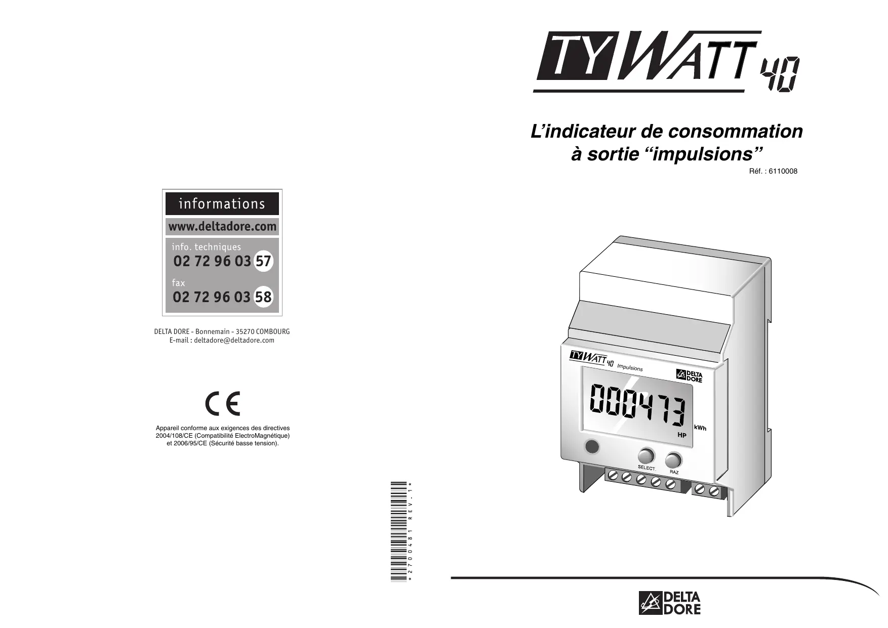 Retrouvez gratuitement la notice de l'appareil TY WATT 40 DELTA DORE au format PDF.
