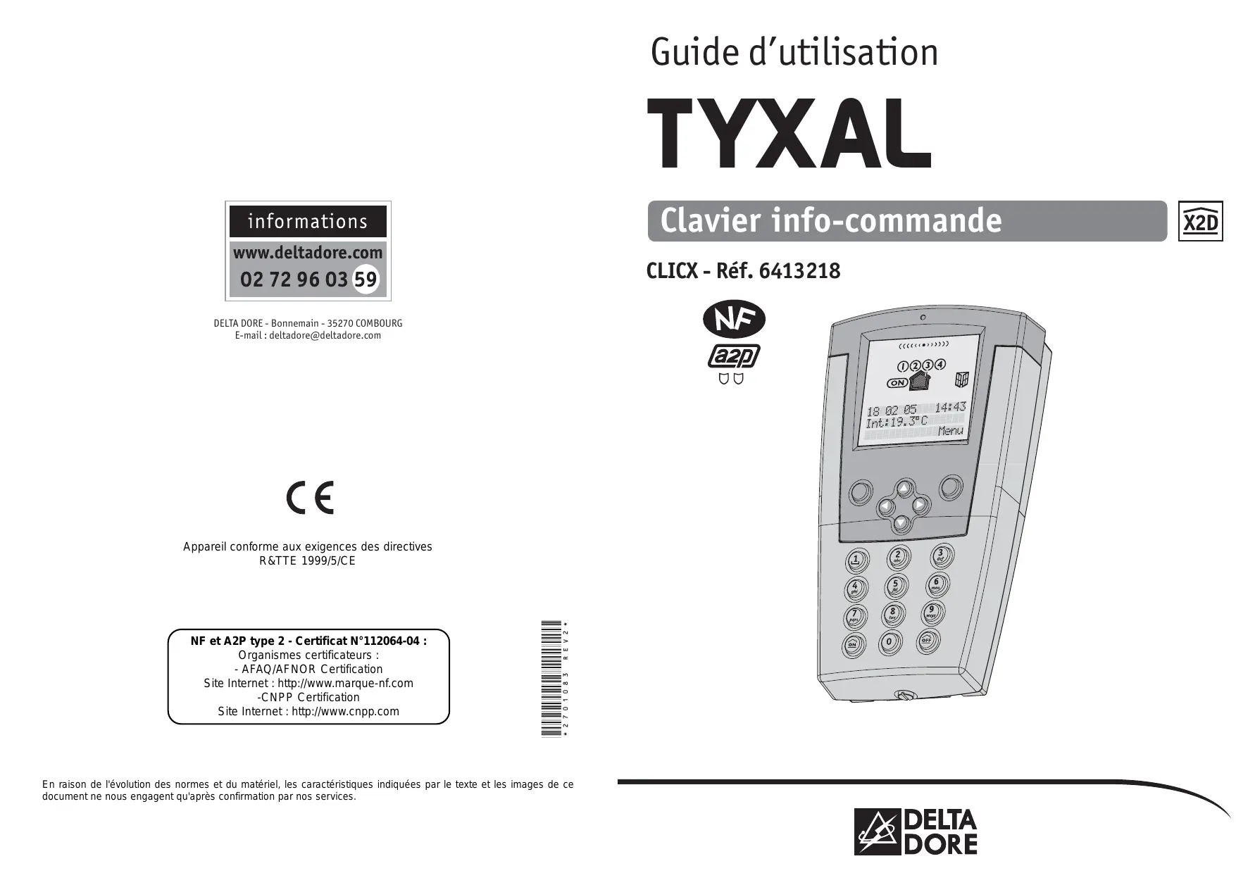 MODE D'EMPLOI TYXAL CLICX DELTA DORE