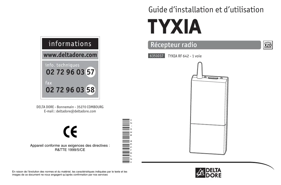 Retrouvez gratuitement la notice de l'appareil TYXIA RF 642-1 VOIE DELTA DORE au format PDF.