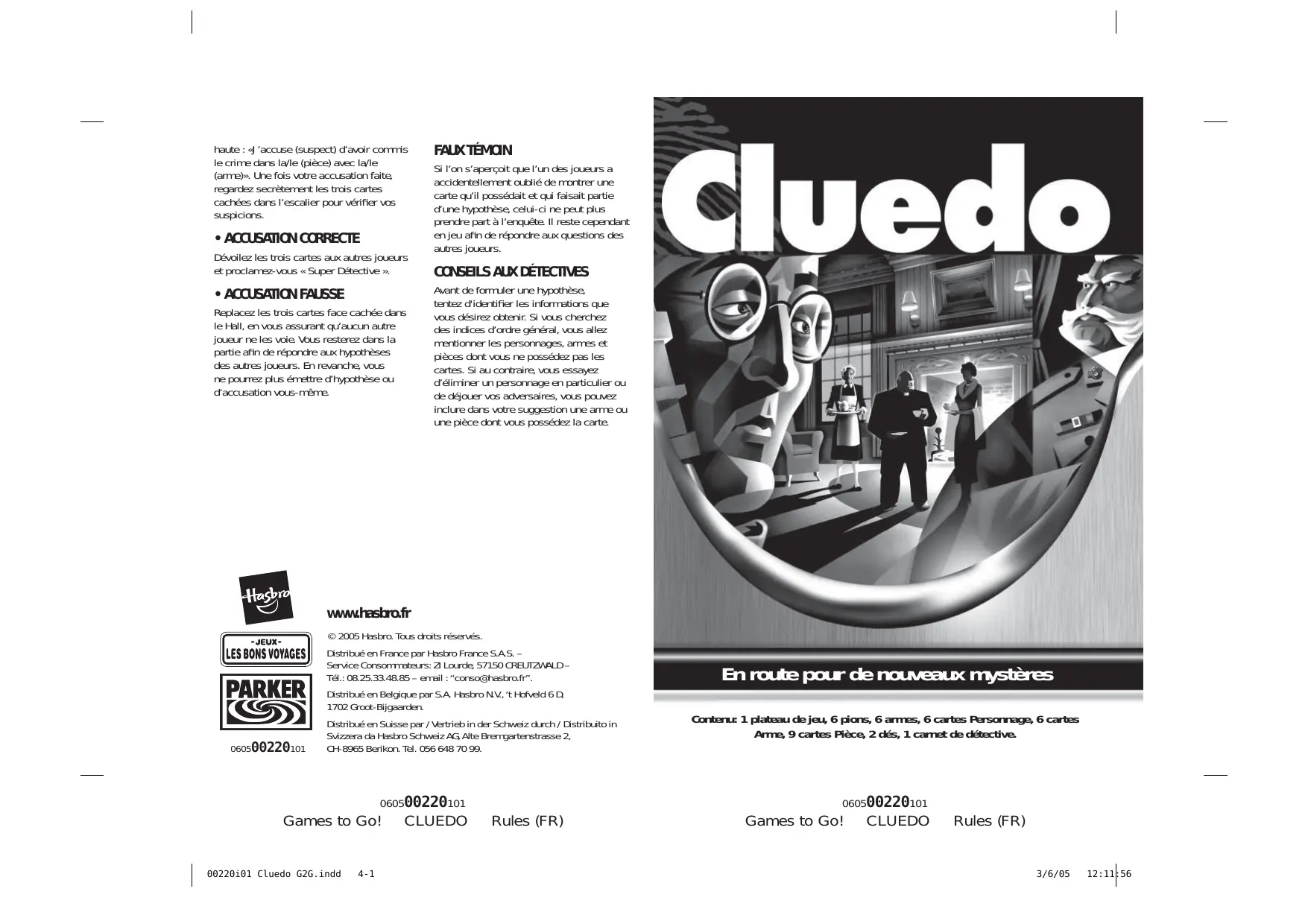 MODE D'EMPLOI CLUEDO VOYAGE HASBRO