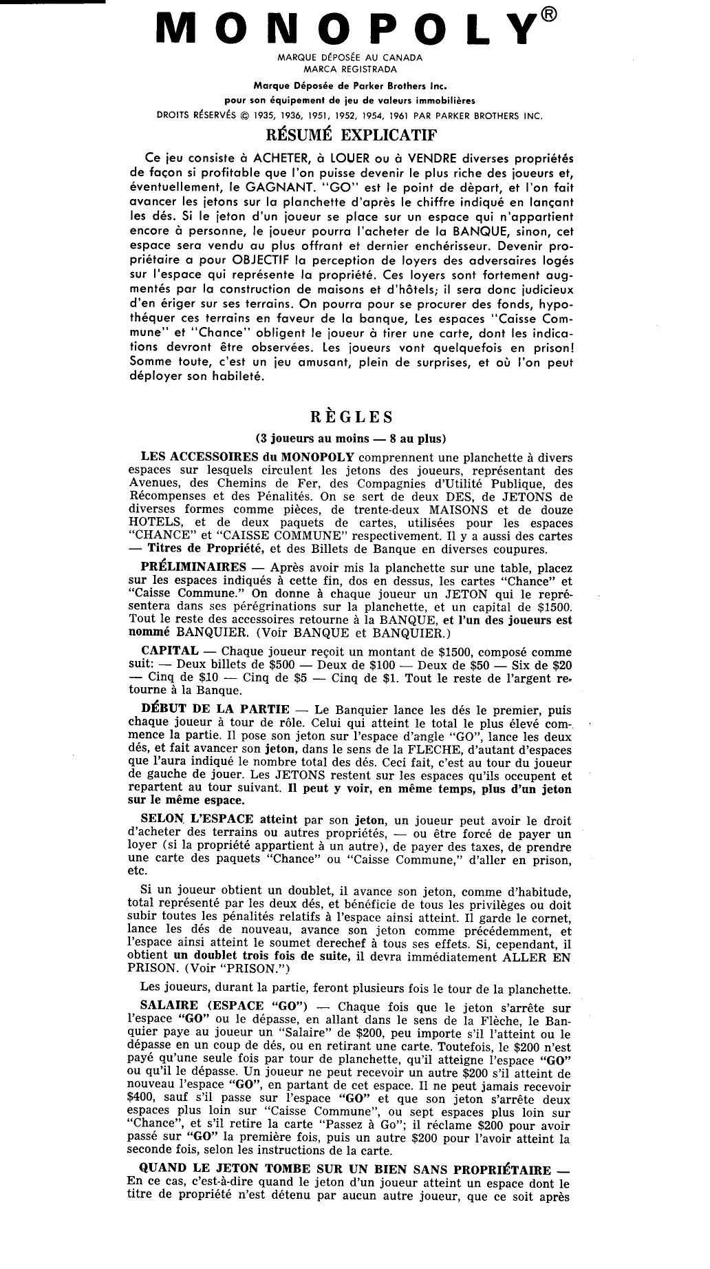 MONOPOLY - Jeux de société HASBRO - Notice d'utilisation et mode d'emploi gratuit