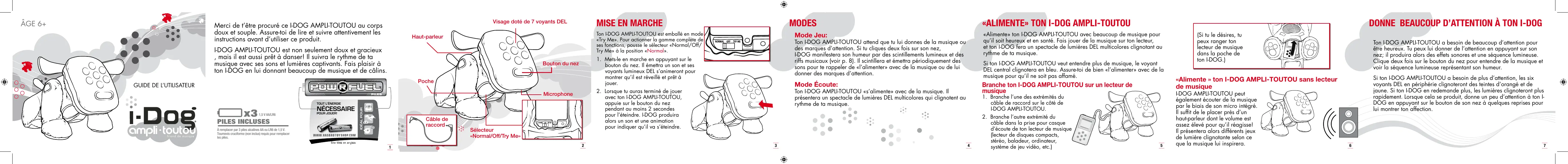 2. Si tu n’interagis pas avec ton I-DOG AMPLI-TOUTOU pendant un certain temps, il s’arrêtera automatiquement pour conserver l’énergie des piles. 3. I-DOG AMPLI-TOUTOU peut réagir à des sons ou des bruits autres que la musique.