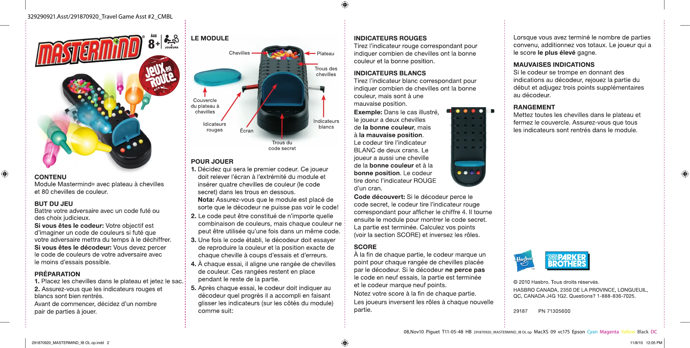 Retrouvez gratuitement la notice de l'appareil MASTERMIND GAMES TO GO HASBRO au format PDF.