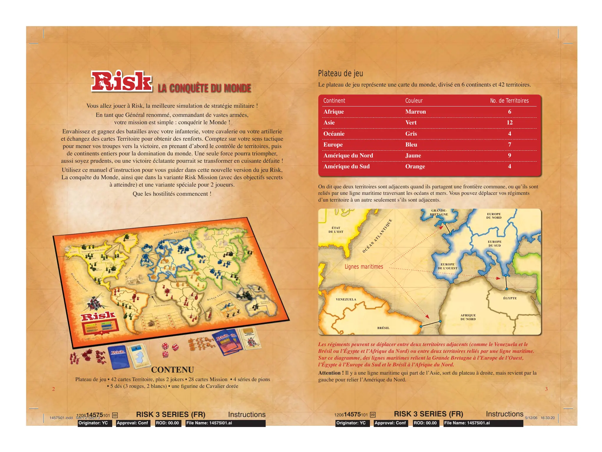 RISK 3 SERIES (FR) Approval: Conf ROD: 00.00 Instructions File Name: 14575i01.ai Attention ! Il y a une ligne maritime qui part de l’Asie, sort du plateau à droite, mais revient par la gauche pour relier l’Amérique du Nord.