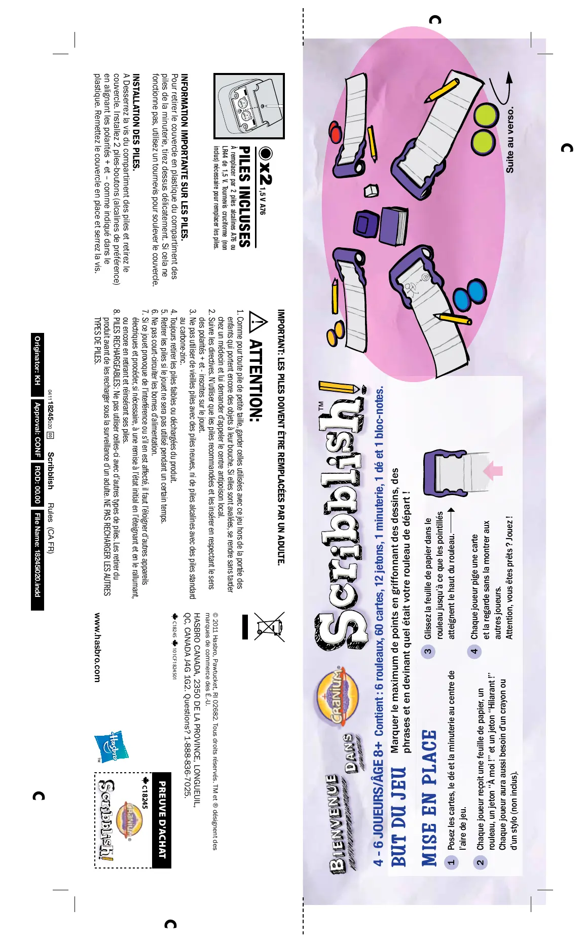 SCRIBBLISH - Jeu de société HASBRO - Notice d'utilisation et mode d'emploi gratuit
