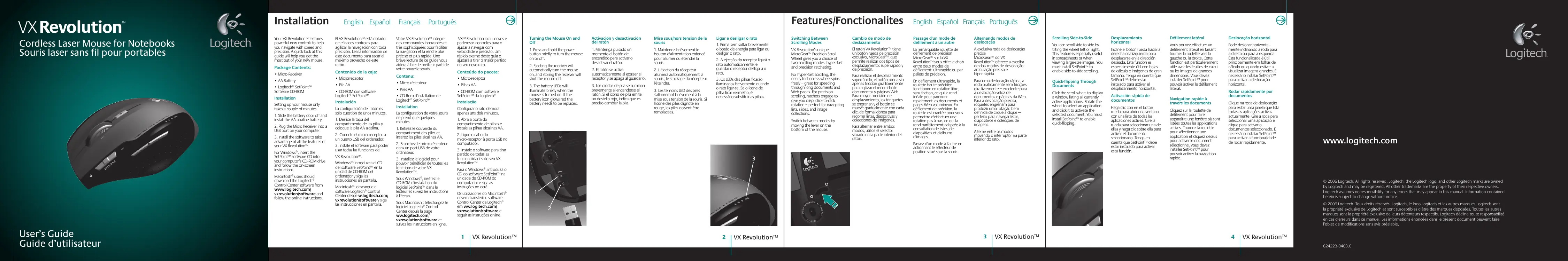 VX REVOLUTION - Souris sans fil LOGITECH - Notice d'utilisation et mode d'emploi gratuit