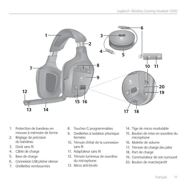G930 - Casque audio sans fil LOGITECH - Notice d'utilisation et mode d'emploi gratuit