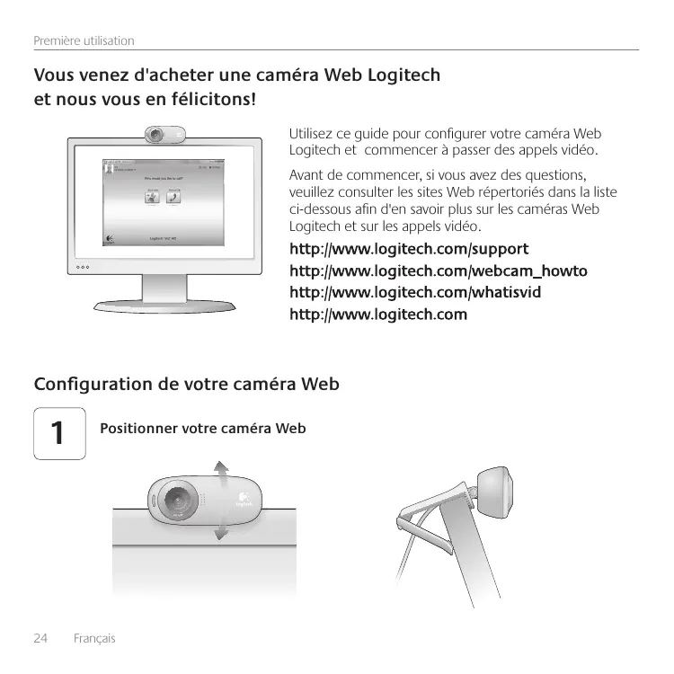 - Ajout d'amis et réalisation d'un appel vidéo Pour en savoir plus: http://www.logitech.com/whatisvid Français 25 Première utilisation Configuration de Logitech Vid HD Installation de Logitech Vid HD Il est recommandé d'installer à la fois le logiciel de caméra Web Logitech et Logitech Vid HD.