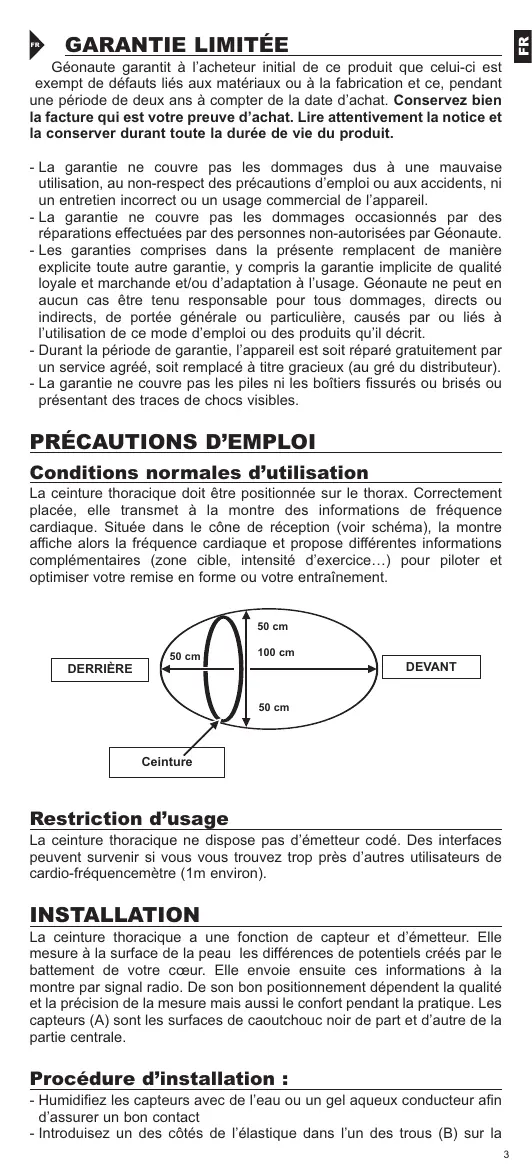 MODE D'EMPLOI CEINTURE CARDIO GEONAUTE