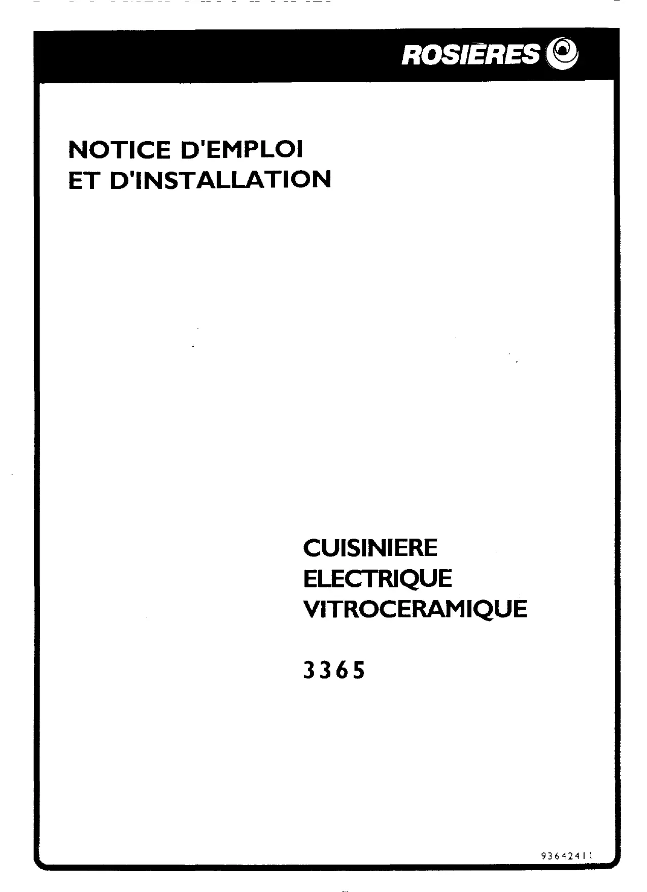 3365 - Cuisinière électrique ROSIERES - Notice d'utilisation et mode d'emploi gratuit