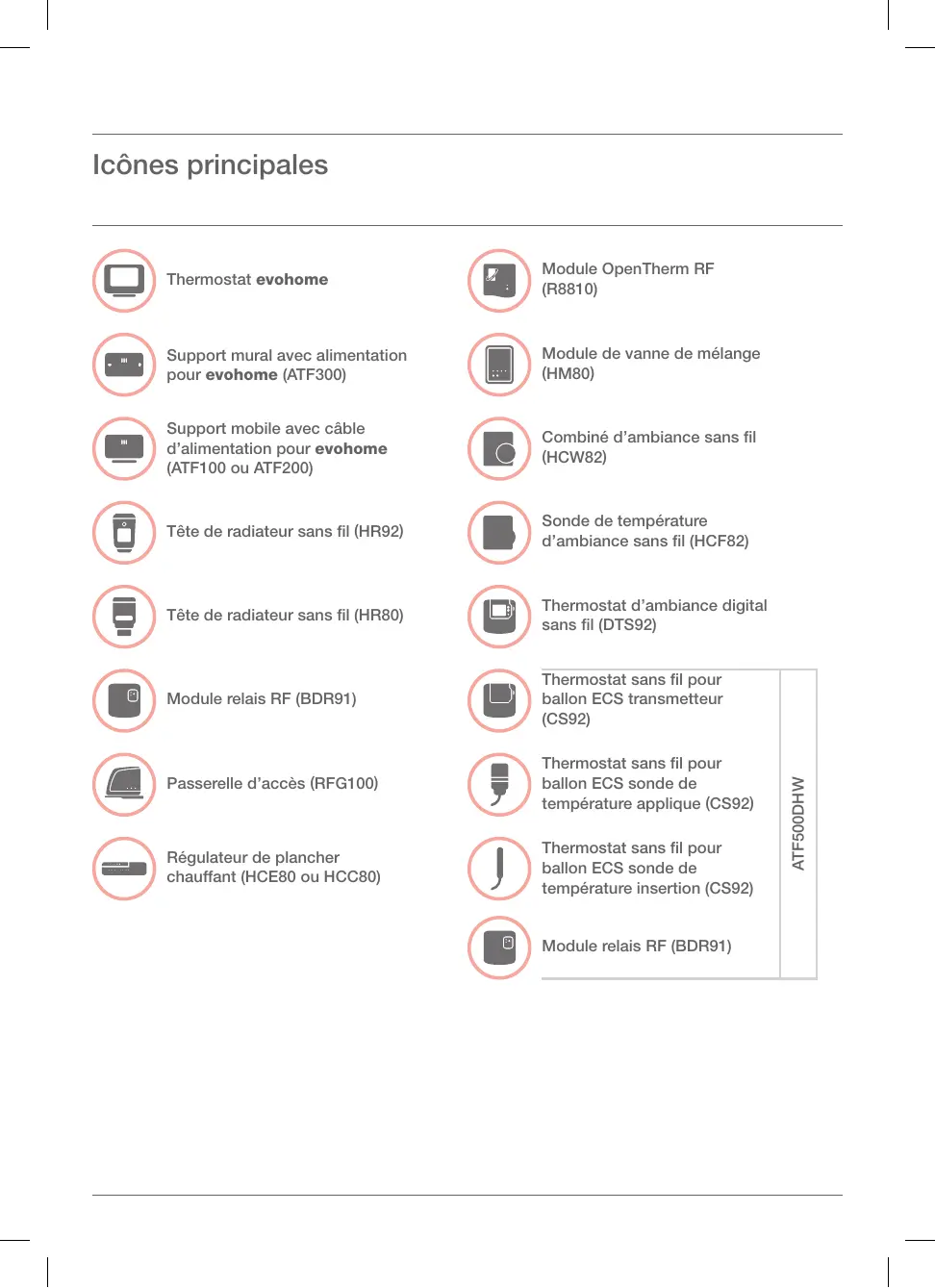 Module relais RF (BDR91) Thermostat sans fil pour ballon ECS (CS92) Passerelle d’accès (RFG100) Module de vanne de mélange (HM80), Régulateur de plancher chauffant (HCE80/HCC80), Module OpenTherm RF (R8810)