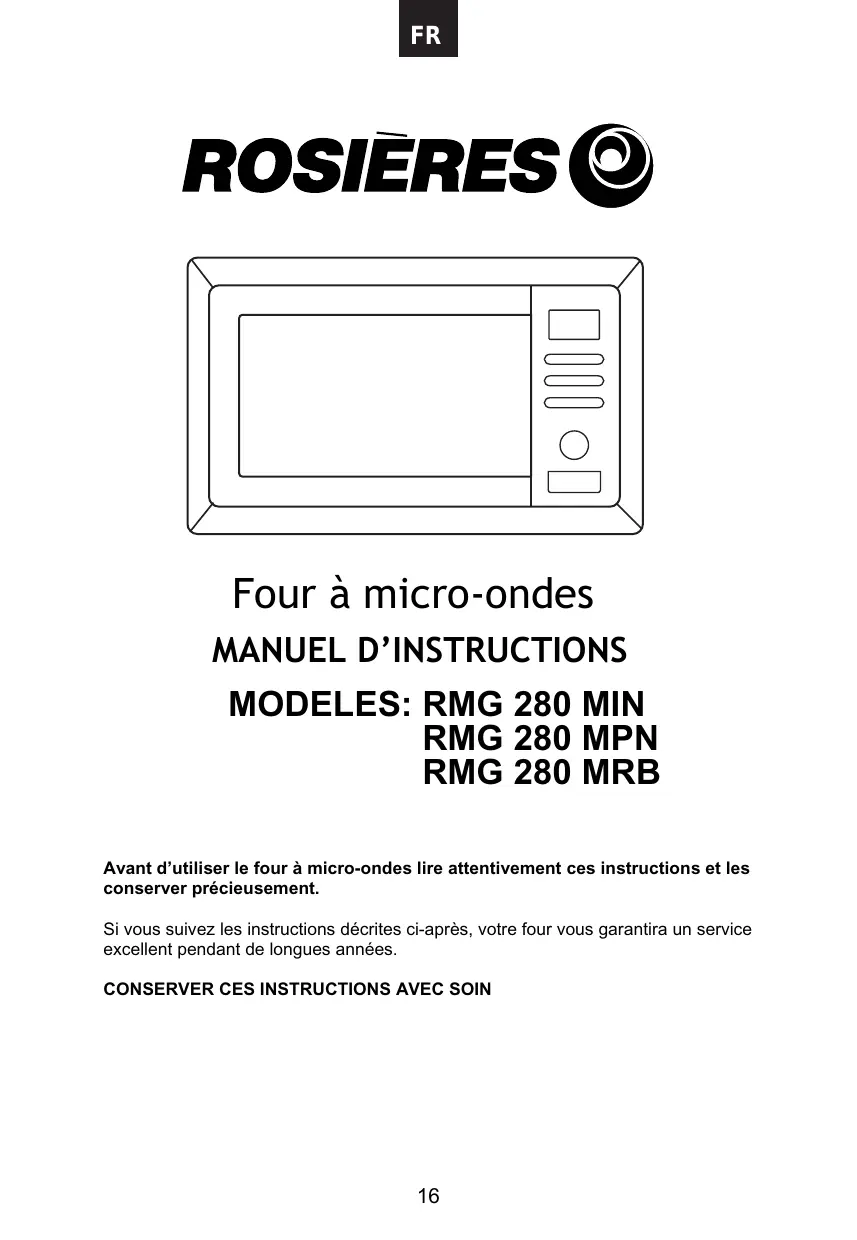RMG280 - Micro-ondes ROSIERES - Notice d'utilisation et mode d'emploi gratuit