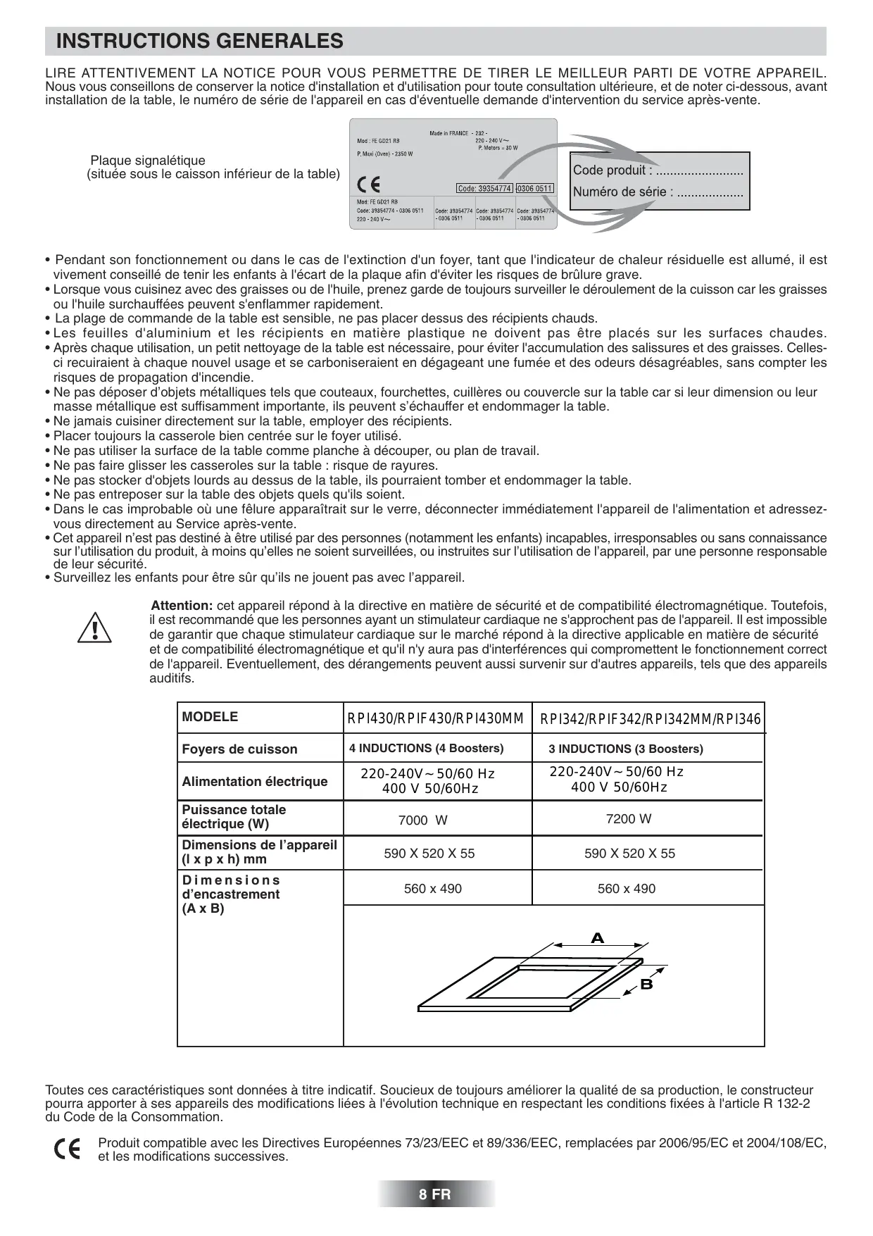 MODELE RPI430/RPIF430/RPI430MM Foyers de cuisson