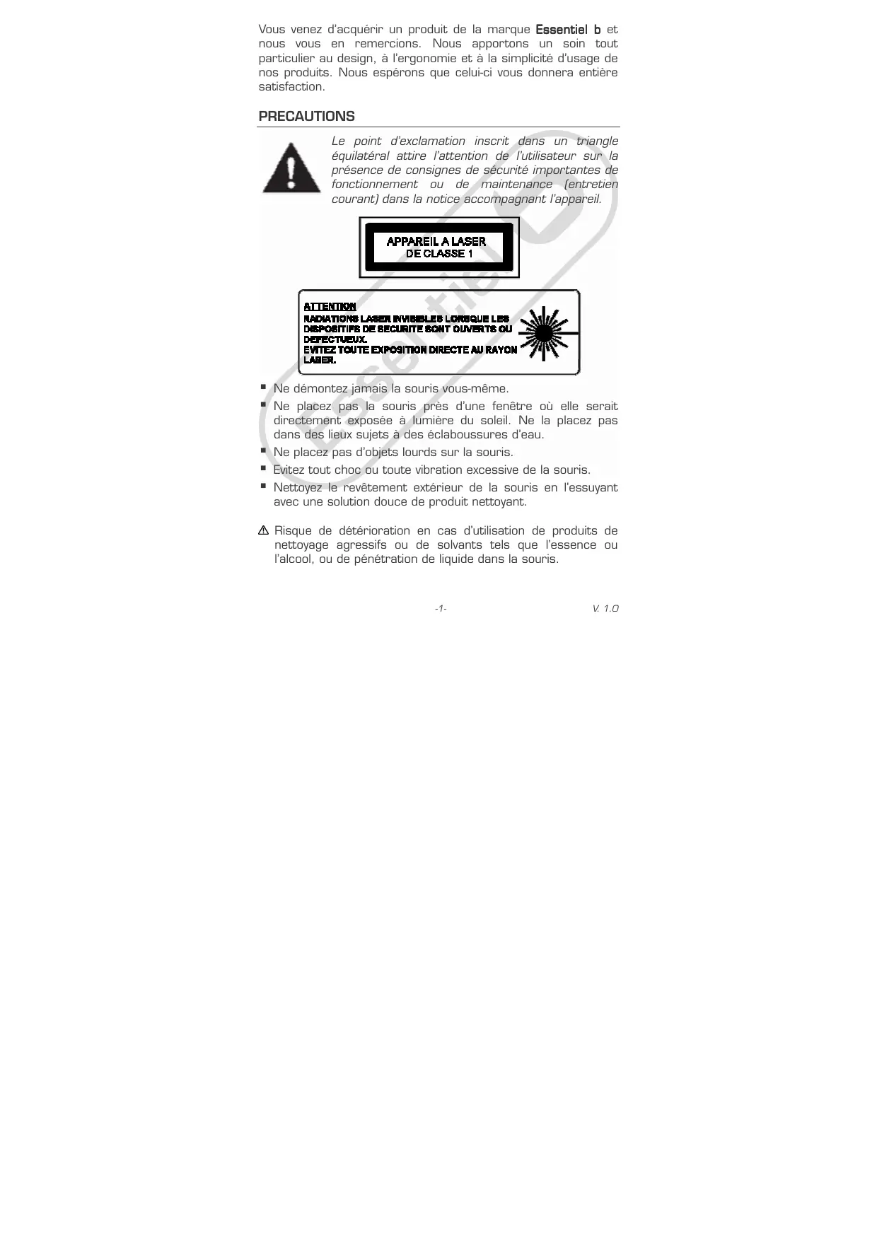 Vou venez d'acquerir un produit de la marque Essentiel b et nous vous en remercions. Nous apportons unsoon tout particulier au design, à l'ergonomie et à la simplicité d'utilisation de nos produits. Nous espérons que celui-ci vous donna sera entière satisfaction.