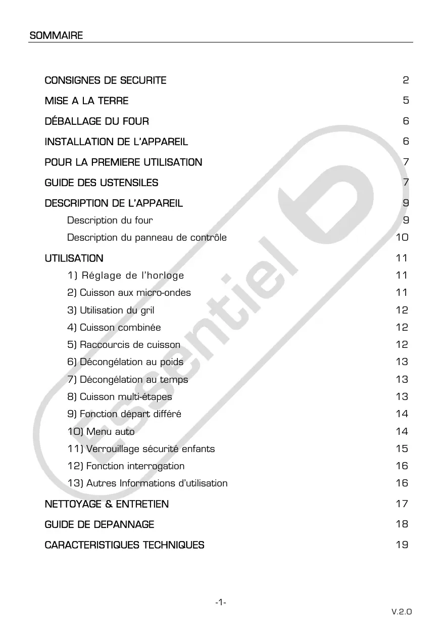 MODE D'EMPLOI MICRO-ONDES GRIL EG 202I ESSENTIELB