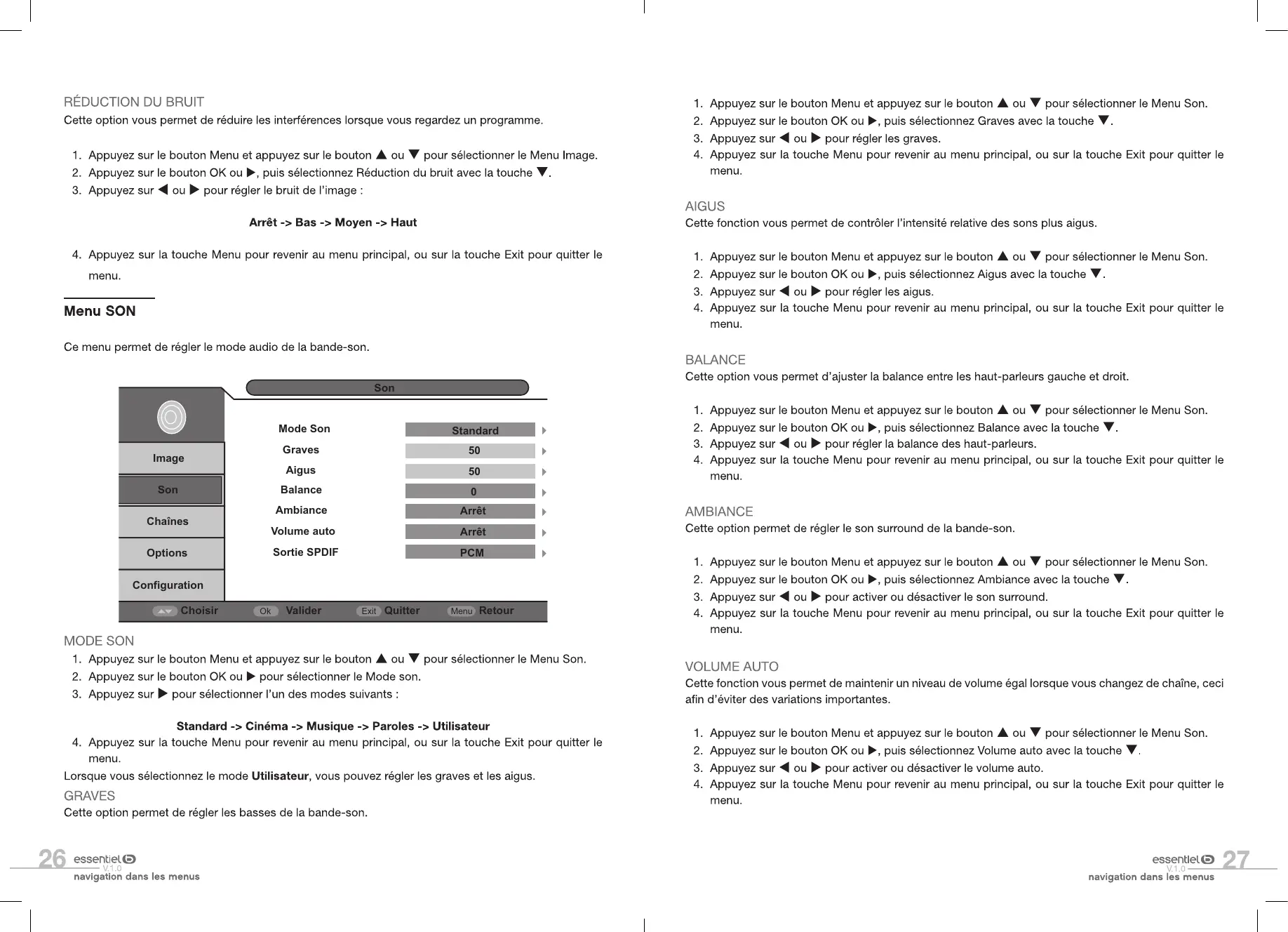 Mode son 26 Graves 27 Aigus 27 Balance 27 Ambiance 27 Volume Auto 27 Sortie SPDIF 28