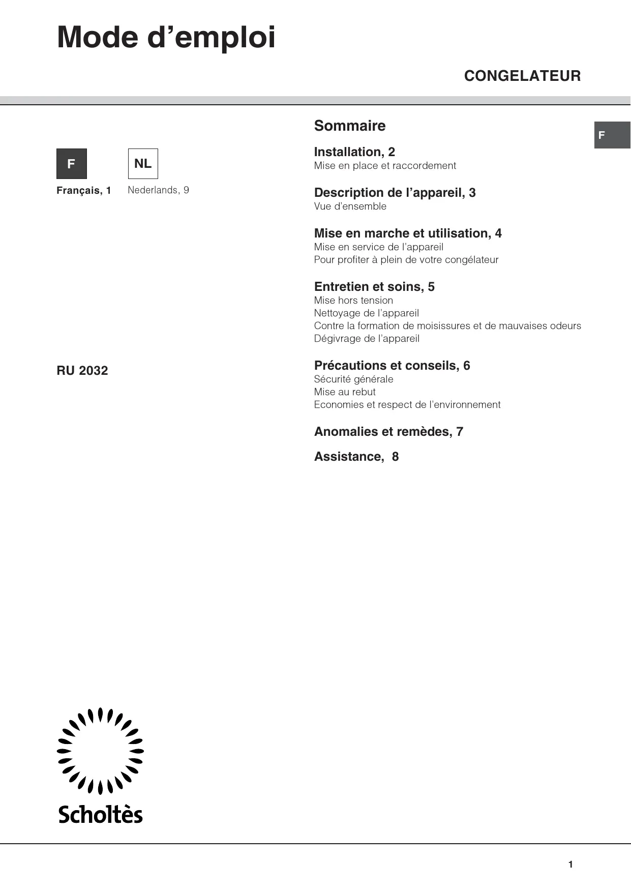 RU 2032 - Congélateur SCHOLTES - Notice d'utilisation et mode d'emploi gratuit