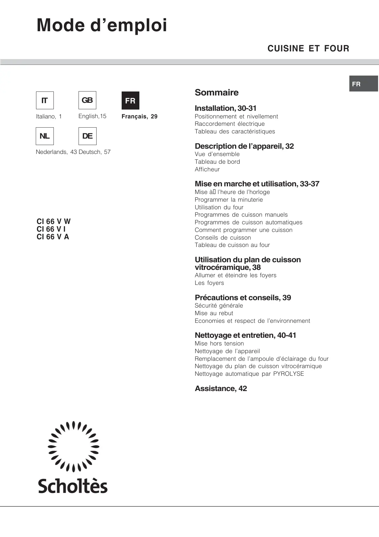 CI 66 VW - Four électrique SCHOLTES - Notice d'utilisation et mode d'emploi gratuit