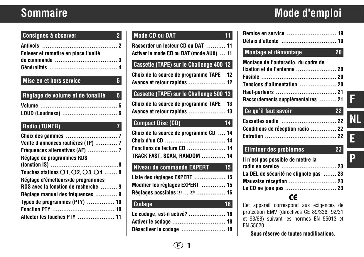 CHALLENGE 400 A AUTORÁDIO RDS C/CASS - Autoradio GRUNDIG - Notice d'utilisation et mode d'emploi gratuit