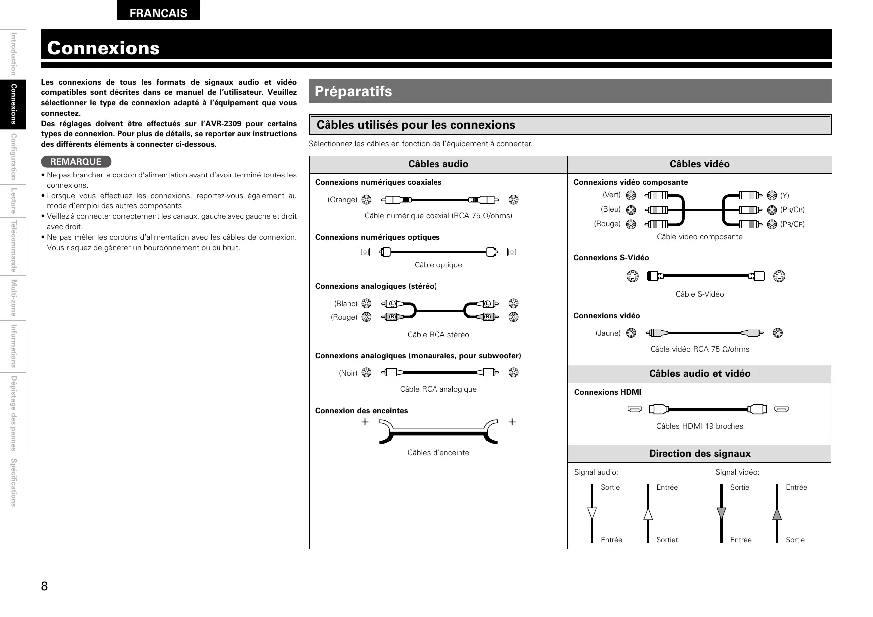 Téléchargez la notice de votre Récepteur audio/vidéo au format PDF gratuitement ! Retrouvez votre notice AVR-2309 - DENON et reprennez votre appareil électronique en main. Sur cette page sont publiés tous les documents nécessaires à l'utilisation de votre appareil AVR-2309 de la marque DENON.