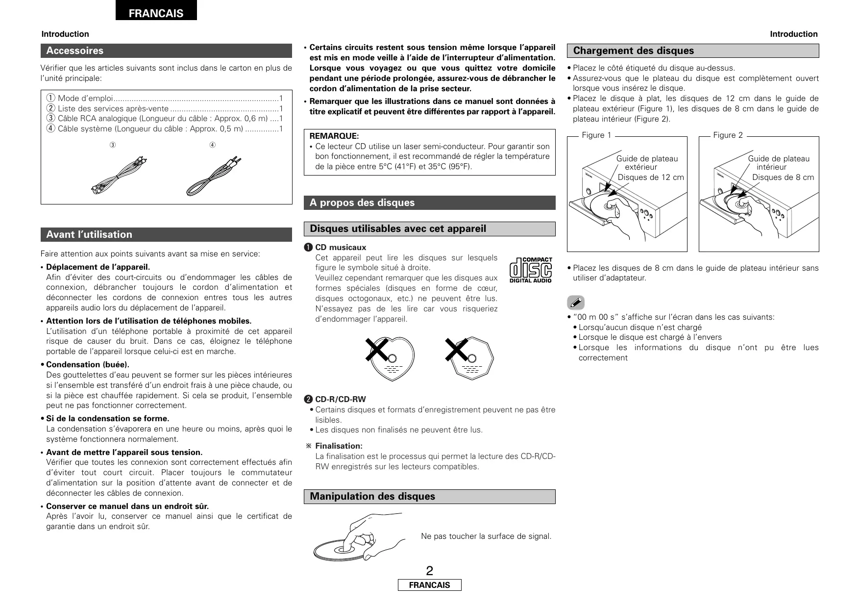 - Lorsque les informations du disque n’ont pu être lues correctement FRANCAIS Introduction Précautions liées au chargement des disques