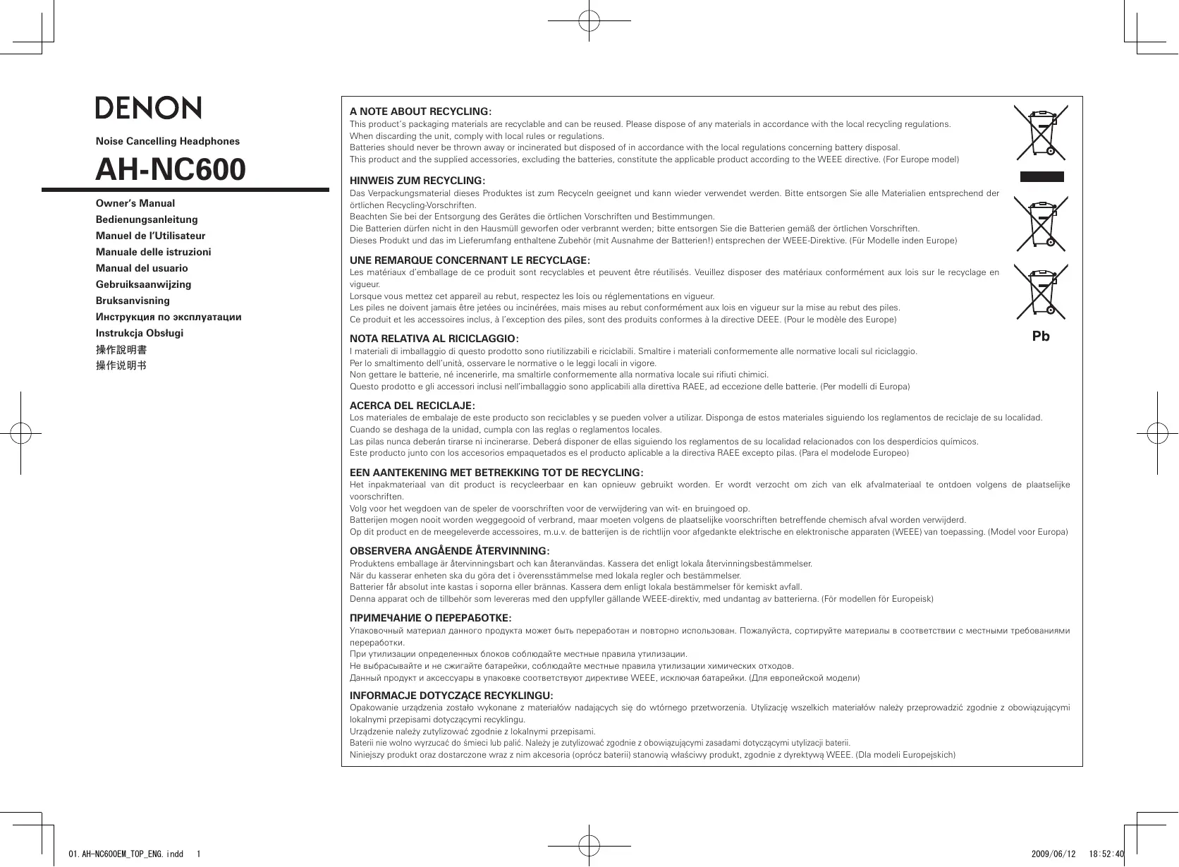 Retrouvez gratuitement la notice de l'appareil AH-NC600 DENON au format PDF.