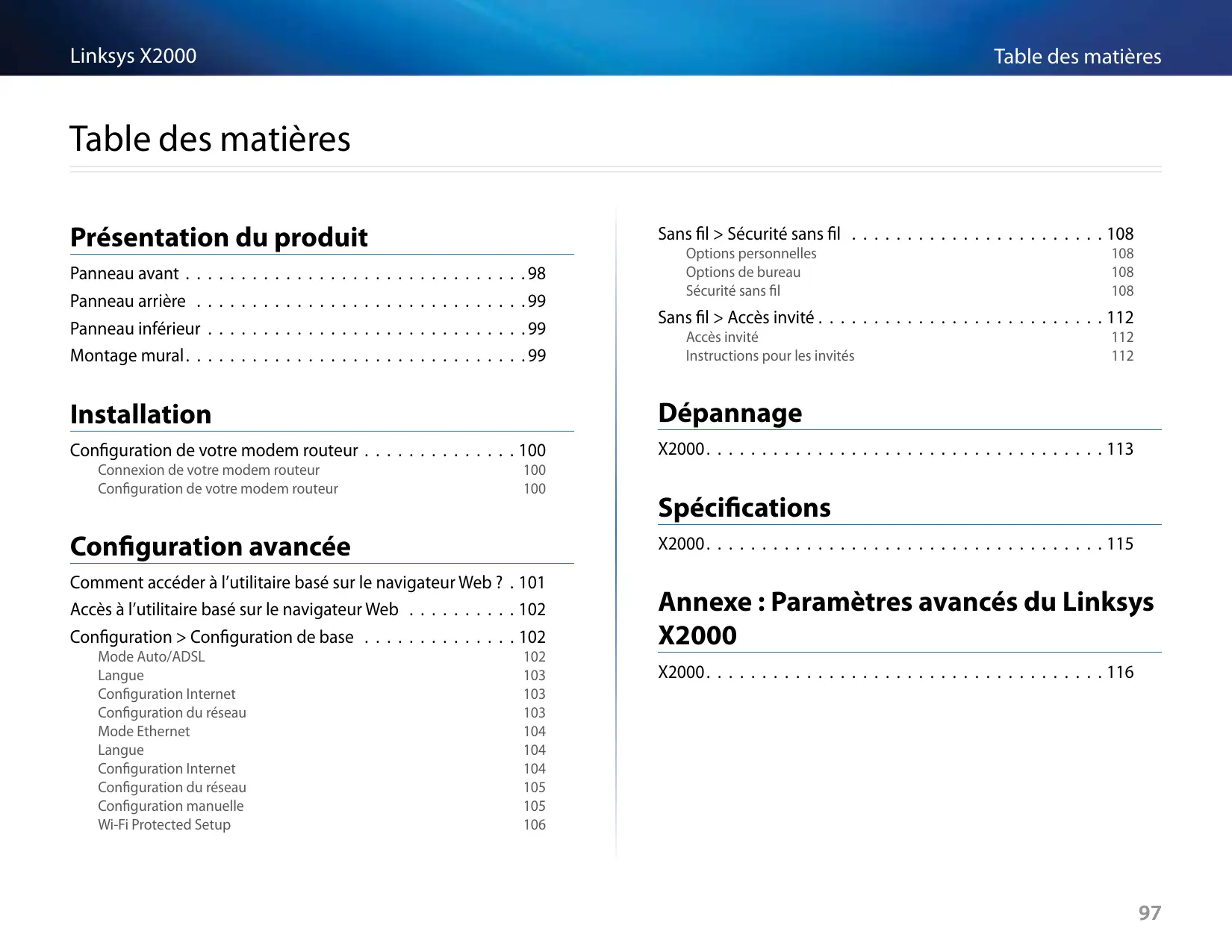 Sans fil > Accès invité . . . . . . . . . . . . . . . . . . . . . . . . . . 112