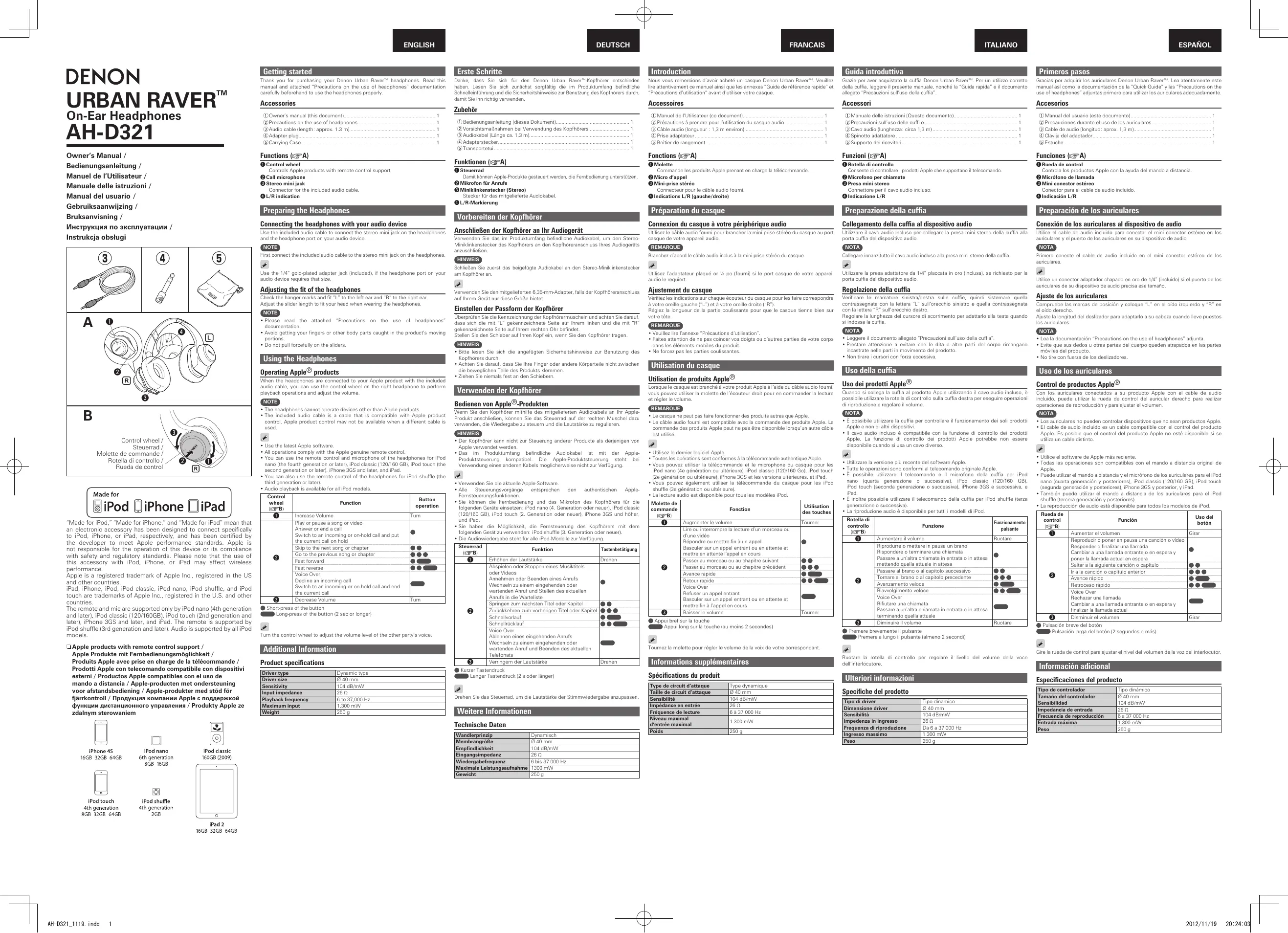 Retrouvez gratuitement la notice de l'appareil AH-D321 DENON au format PDF.