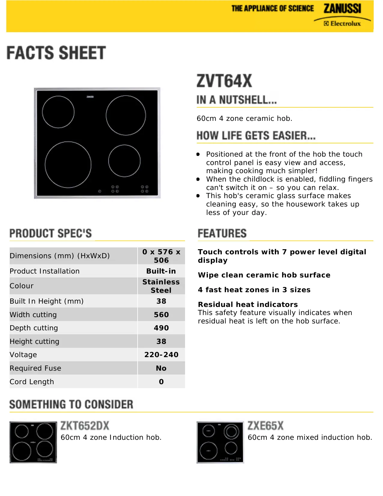 ZVT64X - Table de cuisson electrique ZANUSSI - Notice d'utilisation et mode d'emploi gratuit