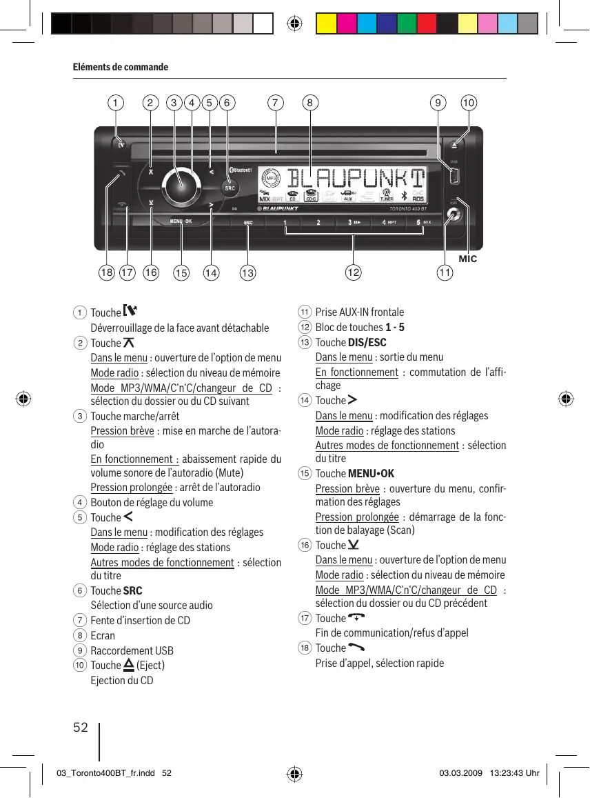 TORONTO 400 BT - Autoradio BLAUPUNKT - Notice d'utilisation et mode d'emploi gratuit