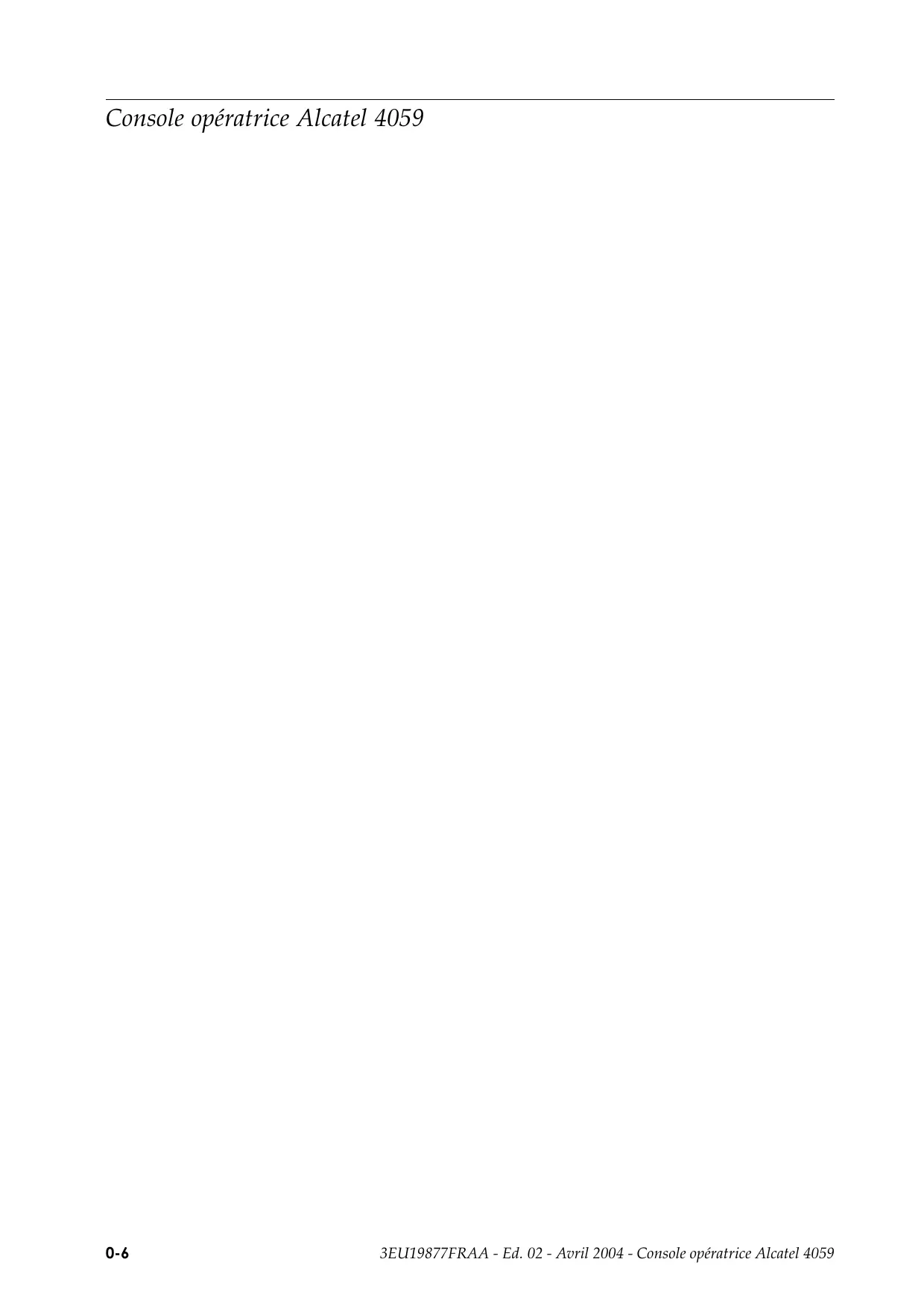 3EU19877FRAA - Ed. 02 - Avril 2004 - Console opératrice Alcatel 4059 0-1 Console opératrice Alcatel 4059